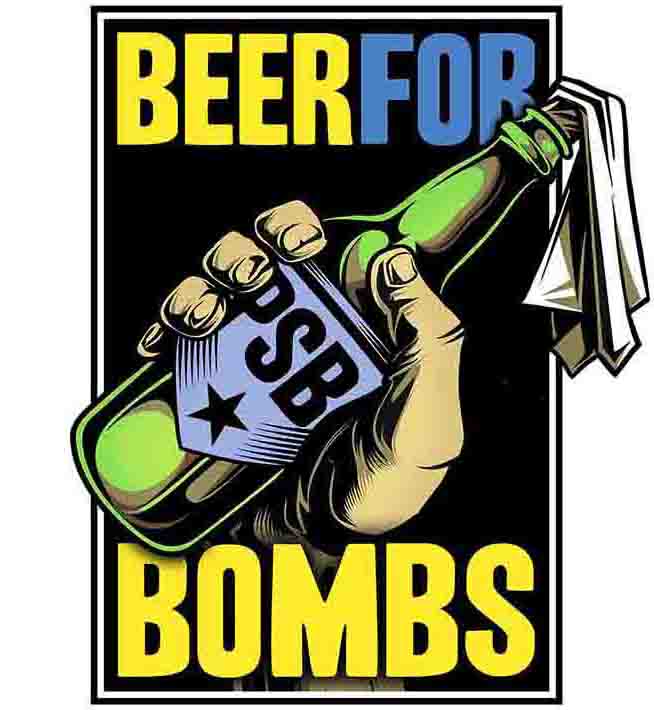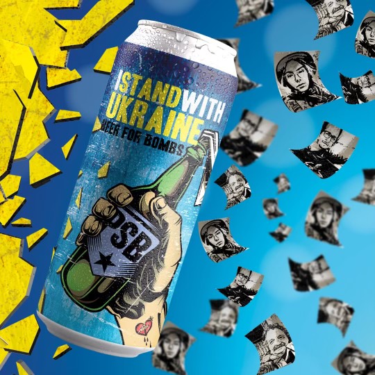 The Beer For Bombs label features the letters PSB – the first letter of the first names of the first three journalists on our list. Their portraits are also on the can.